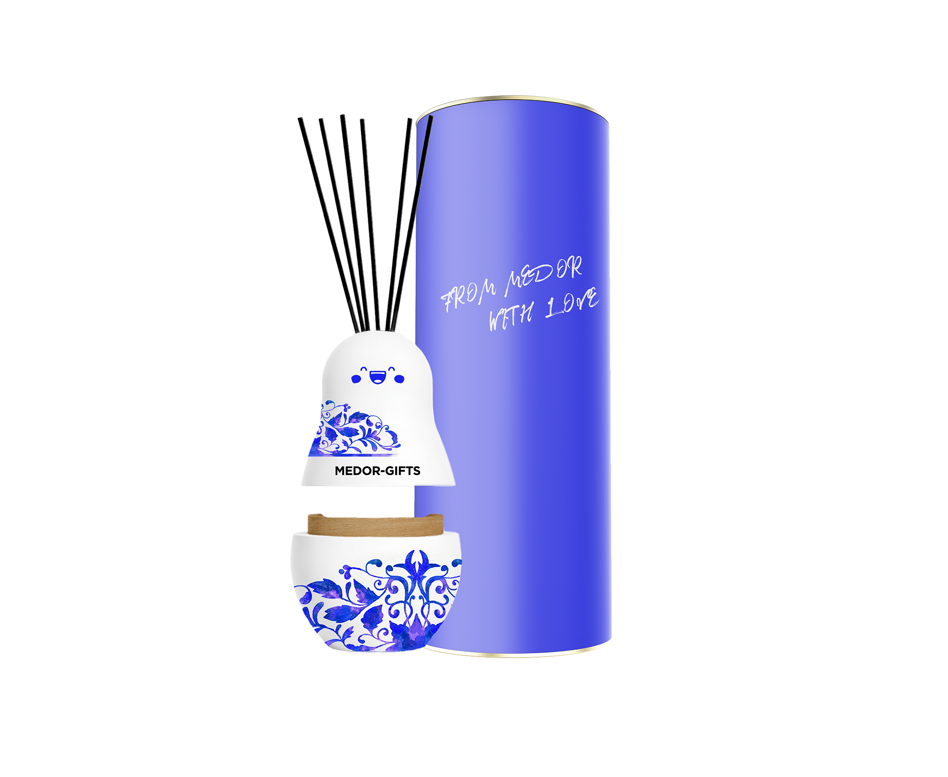 Вдохновленные идеей традиционных ценностей мы создали ароматический диффузор Матрешку, где главный символ русской культуры сочетается с приятными ароматами. Аромадиффузор Матрешка от Medor– это уникальное изделие, потому что все этапы его производства выполняются мастерами вручную.